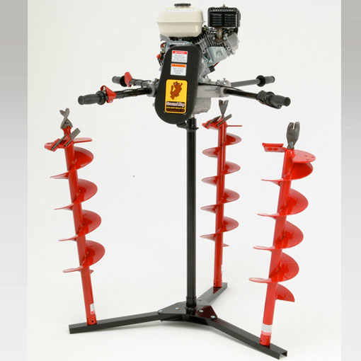 ![]() – Ground Hog’s time tested transmission – Low maintenance – Easily transported – Rapid Return ON Investment – 7/8” square auger drive (No shear pins needed) – Heavy wall steel handlebars – Aluminum Castings for strength and light weight – Centrifugal clutch with needle bearings and all metal shoes and drum – Trigger-type return-style throttle – Heavy Duty cog-type drive belt – Will handle the hardest soils – Handles up to a 12” auger Three engine options: Honda, Briggs & Stratton Intek and Subaru ![]() ![]() ![]()