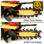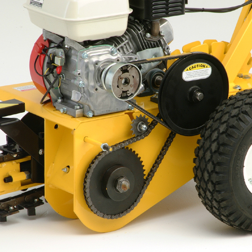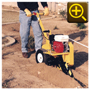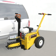 ![]() The T-4’s narrow, compact design allows easy access around the job site and it easily fits through gates and doorways. The T-4 is also easier to use and transport than larger trenchers. The simplified operator controls help make the machine less intimidating to operators unfamiliar with using outdoor power equipment. The Ground Hog T-4 uses a unique ratchet mechanism on the wheels to help prevent the machine from pulling away from the trenching direction. This greatly aids the operator while trenching and allows the trencher to do the digging while the side delivery auger piles the dirt up neatly beside the trench. When the depth control handle is moved to one of the 3 digging positions the wheel ratchets engage allowing the wheels to only roll in the trenching direction. The T-4 is available in several different configurations in regards to the maximum depth of the trench, the blade type and choice of engine. Two different maximum trench depths are available, one that has a maximum depth of 12 inches and one that will dig up to an 18 inch deep trench. Both models have 3 operator controlled depth settings and are essentially the same machine with the 18 inch model having a longer digging boom and chain. Both the 12 and 18 inch models are available with a choice of replaceable carbide-tipped Shark teeth or replaceable carbide-tipped Bullet-type teeth for digging in all types of soil conditions. The Shark and Bullet teeth are both good general purpose blades, however they both have their strengths in different types of soil. The Shark blades have shorter teeth that penetrate the ground easier and are noticeably smoother while digging and also do better in soil that has small roots and other obstructions. Both types of blades will dig in rocky soil, but the Bullet chain has a taller profile that will handle baseball-size and larger rocks better. Both blade types dig a 3 inch wide trench and there is a 4 inch wide option available on the 12 inch models. The compact size of the T-4 Trencher and it’s built in lift handles make it easy to transport. The unit easily fits in the bed of a small pickup truck and we offer an optional carrier so the trencher can be easily loaded and unloaded by one person and securely transported on the back of any vehicle with a Class 3 or better hitch receiver such as an SUV or van. The T-4 Trencher is available with 3 engine options; Honda, Briggs & Stratton Intek and Subaru. ![]() ![]()